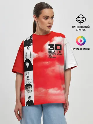 Женская футболка оверсайз / 30 Seconds to Mars красное небо