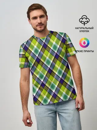 Мужская базовая футболка / Крупный клетчатый косой узор