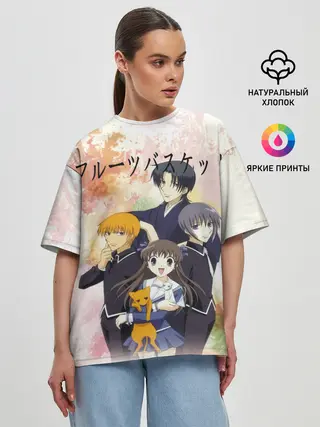Женская футболка оверсайз / Корзинка фруктов персонажи