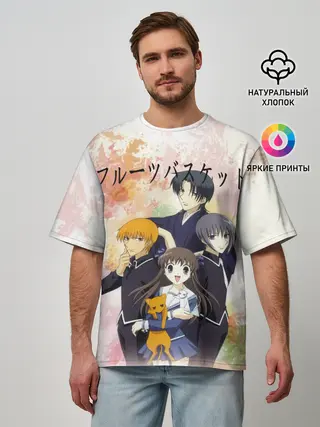 Мужская футболка оверсайз / Корзинка фруктов персонажи