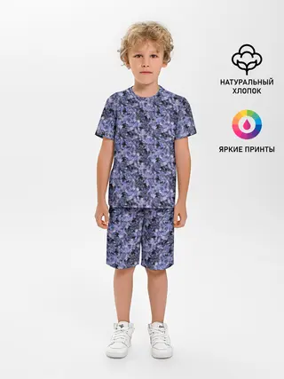Детская пижама с шортами / Сине-фиолетовый цветочный узор