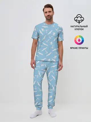 Мужская пижама с брюками / Чайки в небе паттерн
