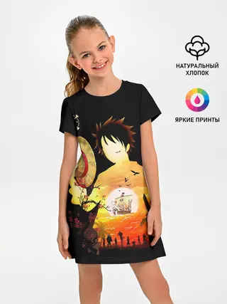 Женская футболка оверсайз / Силуэт Луффи One piece