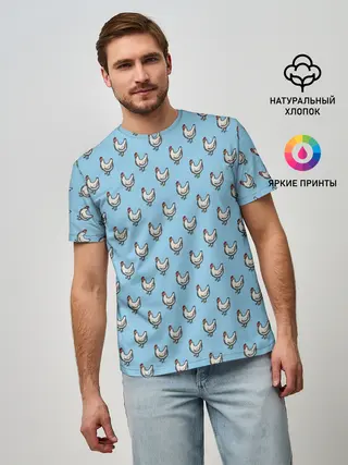 Лонгслив женский. Хлопок / Белая курочка паттерн
