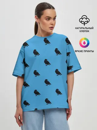 Женская футболка оверсайз / Вороны паттерн