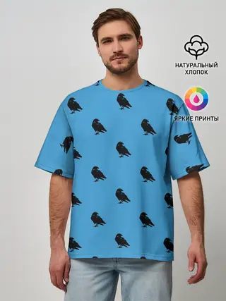 Мужская футболка оверсайз / Вороны паттерн