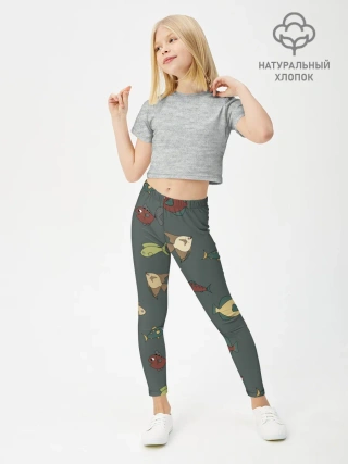 Леггинсы для девочки / Морские рыбки на зеленом фоне