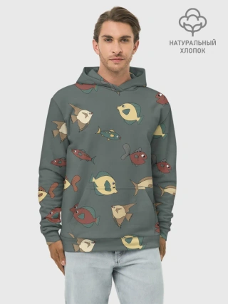 Худи мужской база хлопок / Морские рыбки на зеленом фоне