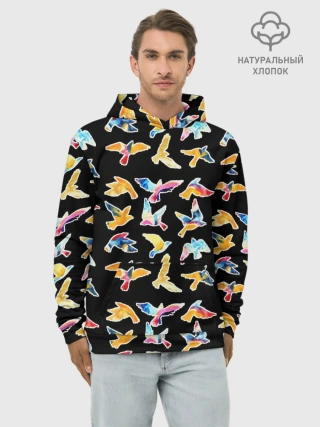 Худи мужской база хлопок / парящие акварельные птицы