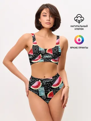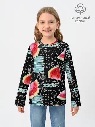 Лонгслив женский. Хлопок / Абстракция Пальмы Текстура