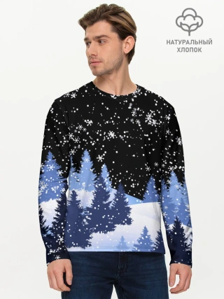 Мужской лонгслив базовый / Снежная ночь в зимнем лесу