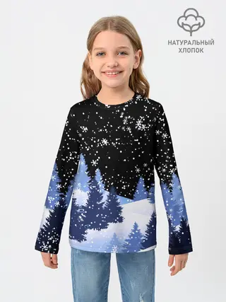 Детский лонгслив / Снежная ночь в зимнем лесу