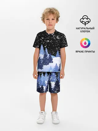 Детская пижама с шортами / Снежная ночь в зимнем лесу