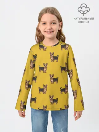 Лонгслив женский. Хлопок / Йоркширский терьер паттерн