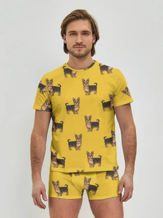 Мужские трусы с футболкой / Йоркширский терьер паттерн