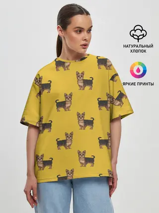 Женская футболка оверсайз / Йоркширский терьер паттерн