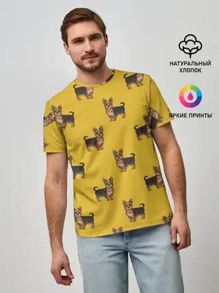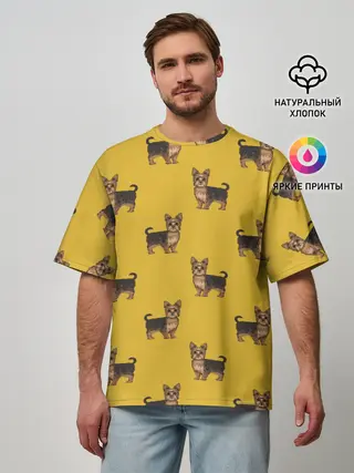 Мужская футболка оверсайз / Йоркширский терьер паттерн