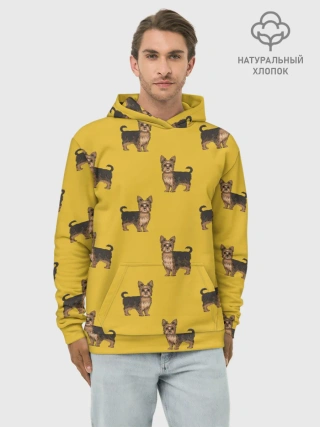 Худи мужской база хлопок / Йоркширский терьер паттерн