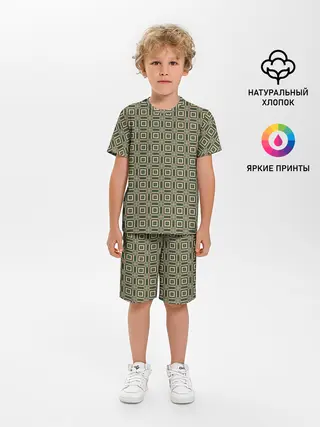 Детская пижама с шортами / Абстракция из зеленых квадратов