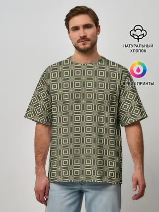 Мужская футболка оверсайз / Абстракция из зеленых квадратов