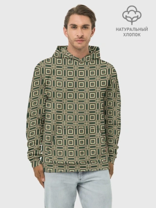 Худи мужской база хлопок / Абстракция из зеленых квадратов