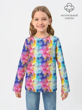 Детский лонгслив / Радужные Снежные Узоры