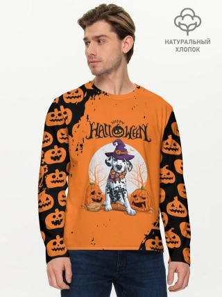 Мужской лонгслив базовый / Далматинец в шляпе | Хэллоуин