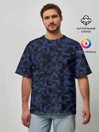 Мужская футболка оверсайз / Темная пиксельная абстракция