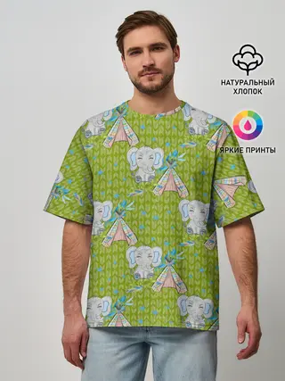 Лонгслив женский. Хлопок / Слоны | Узоры