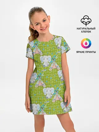 Лонгслив женский. Хлопок / Слоник и вигвам