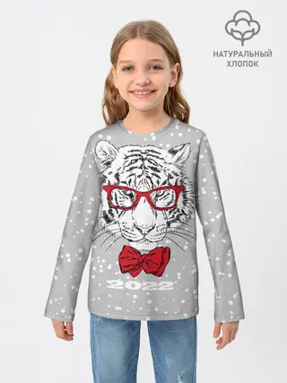 Детский лонгслив / Белый тигр с красным бантом