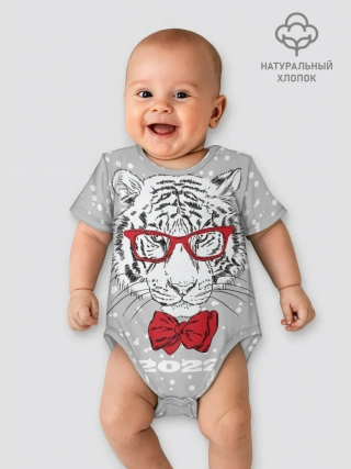 Детское боди / Белый тигр с красным бантом