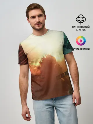 Мужская базовая футболка / ГОДЗИЛЛА РАЗРУШАЕТ ГОРОД