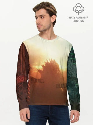 Мужской лонгслив базовый / ГОДЗИЛЛА РАЗРУШАЕТ ГОРОД