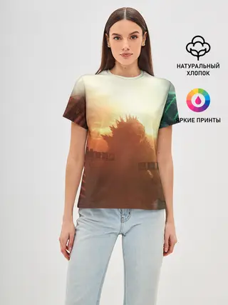 Женская базовая футболка / ГОДЗИЛЛА РАЗРУШАЕТ ГОРОД