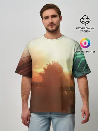 Мужская футболка оверсайз / ГОДЗИЛЛА РАЗРУШАЕТ ГОРОД