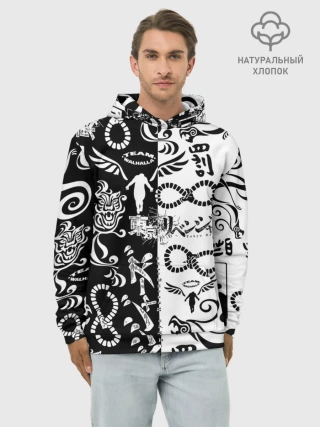 Худи мужской база хлопок / ТОКИЙСКИЕ МСТИТЕЛИ ЛОГОБОМБИНГ ЧБ