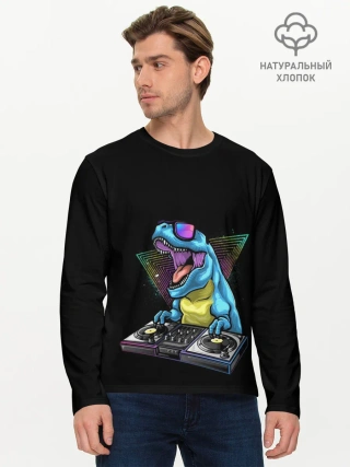 Мужской лонгслив базовый / Динозавр ди-джей