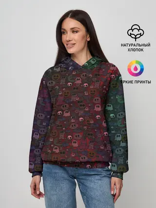 Лонгслив женский. Хлопок / Совушка и хэллоуин
