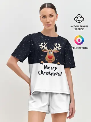 Женская пижама с шортами / Новогодний Оленёнок Рудольф