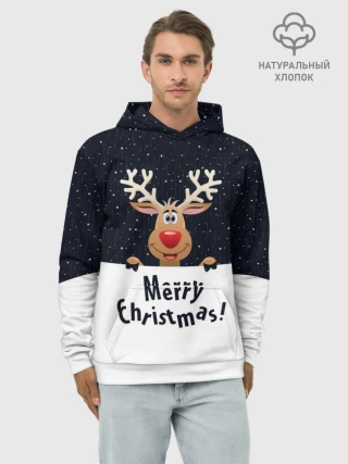 Худи мужской база хлопок / Новогодний Оленёнок Рудольф
