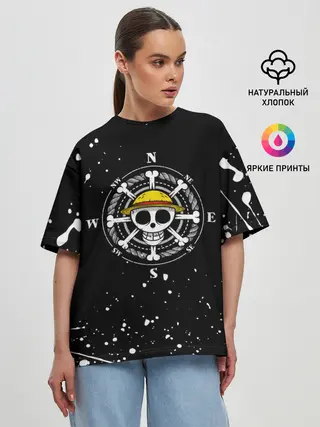 Женская футболка оверсайз / ONE PIECE | ВАН ПИС ЧЕРЕП БРЫЗГИ КРАСОК