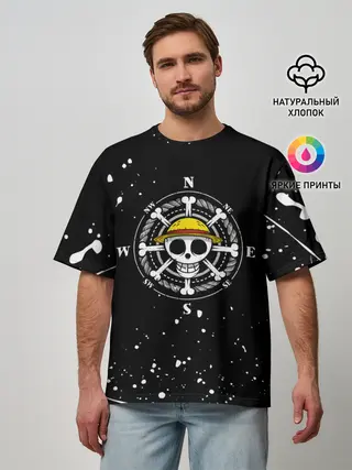 Мужская футболка оверсайз / ONE PIECE | ВАН ПИС ЧЕРЕП БРЫЗГИ КРАСОК