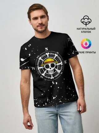 Мужская базовая футболка / ONE PIECE | ВАН ПИС ЧЕРЕП БРЫЗГИ КРАСОК