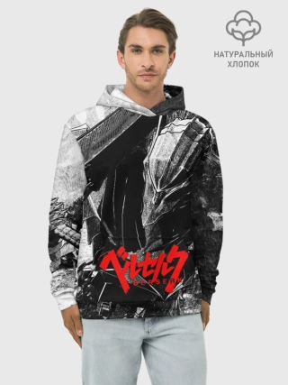 Худи мужской база хлопок / BERSERK Ч/Б | БЕРСЕРК