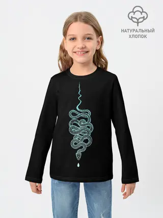 Лонгслив женский. Хлопок / Узор зеленая чешуя дракон