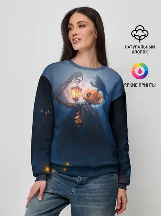 Женский свитшот / ТЫКВИННЫЙ МОНСТР В ТУМАНЕ / ХЕЛЛОУИН