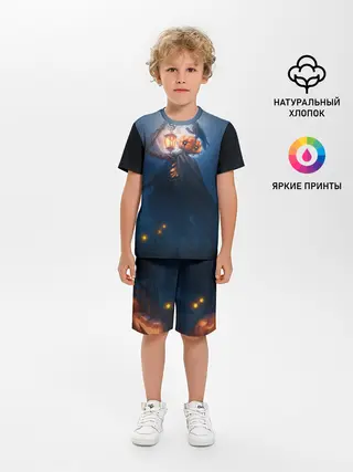 Детская пижама с шортами / ТЫКВИННЫЙ МОНСТР В ТУМАНЕ / ХЕЛЛОУИН