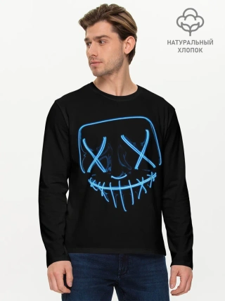 Мужской лонгслив базовый / Неоновая маска Хэллоуина