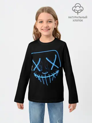 Лонгслив женский. Хлопок / Неоновая маска Хэллоуина